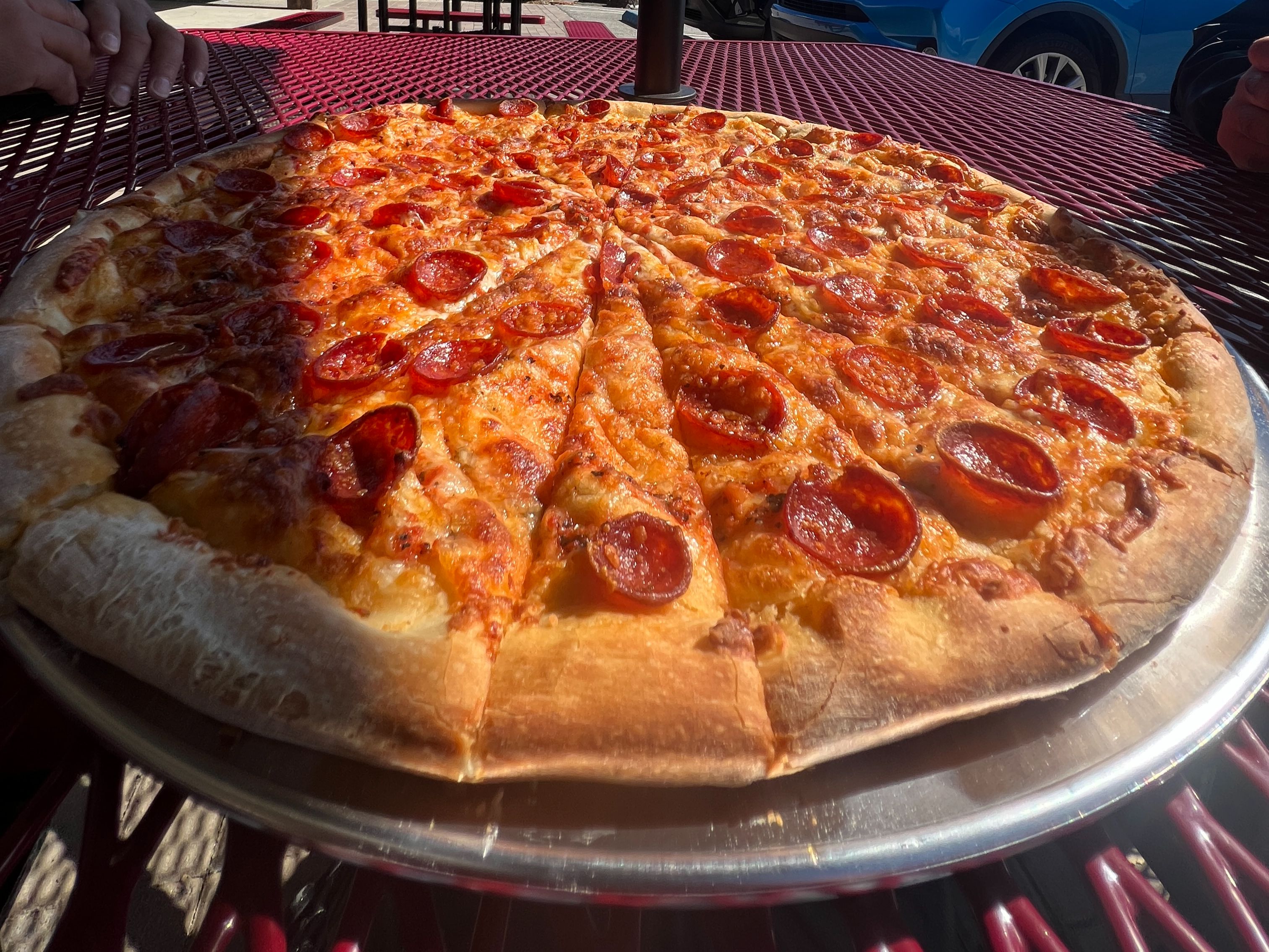 Salami, pepperoni, sausage, mushroom, garlic, bell peppers, olives, onions, cheese.